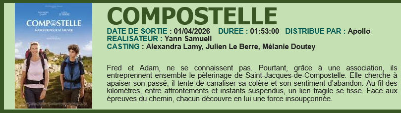 Fred et Adam, un adolescent en rupture, ne se connaissent pas. Pourtant, grâce à une association, ils entreprennent ensemble le pèlerinage de Saint-Jacques-de-Compostelle. Elle cherche à apaiser son passé, il tente de canaliser sa colère et son sentiment d’abandon. Au fil des kilomètres, entre affrontements et instants suspendus, un lien fragile se tisse. Face aux épreuves du chemin, chacun découvre en lui une force insoupçonnée.