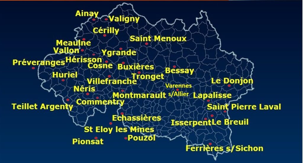 Actuellement 27 communes du département de l’Allier et 3 communes du Puy de Dôme, 1 du Cher font partie du réseau de diffusion mensuelle.