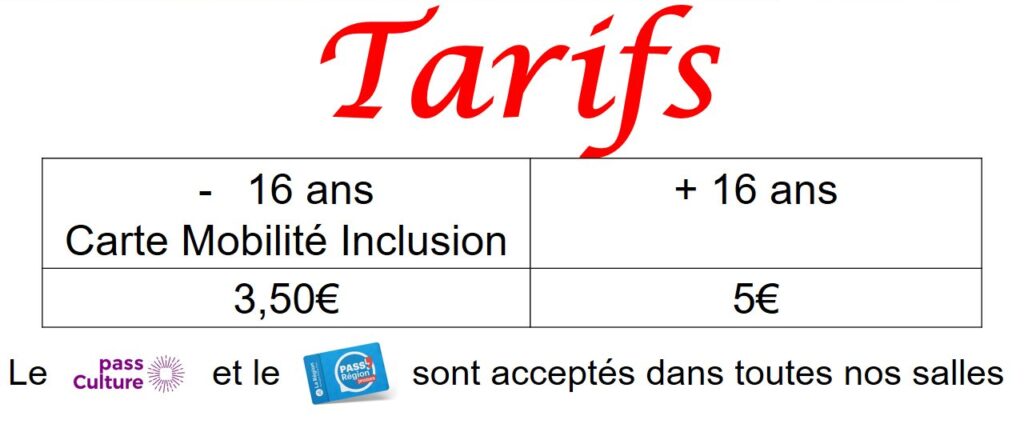 le prix du billet est de 5 euros pour les adultes ( à partir de 16ans) et de 3,50euros pour les enfants et les adolescents, les cartes pass’jeunes pass culture et mobilité inclusion sont acceptées.